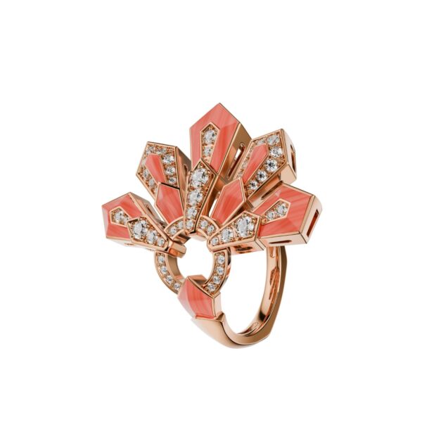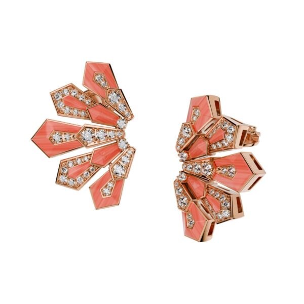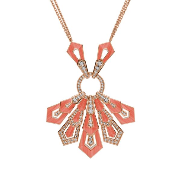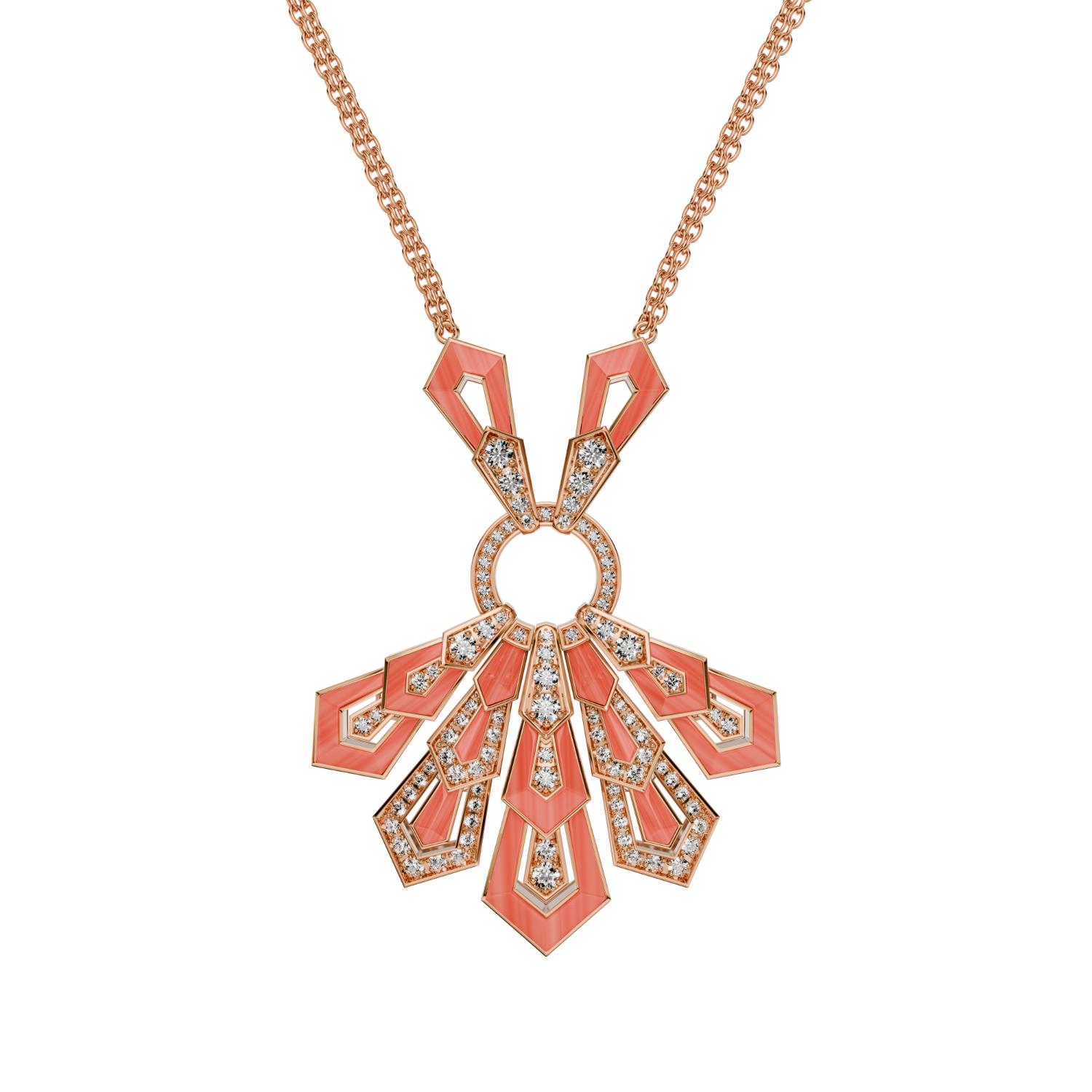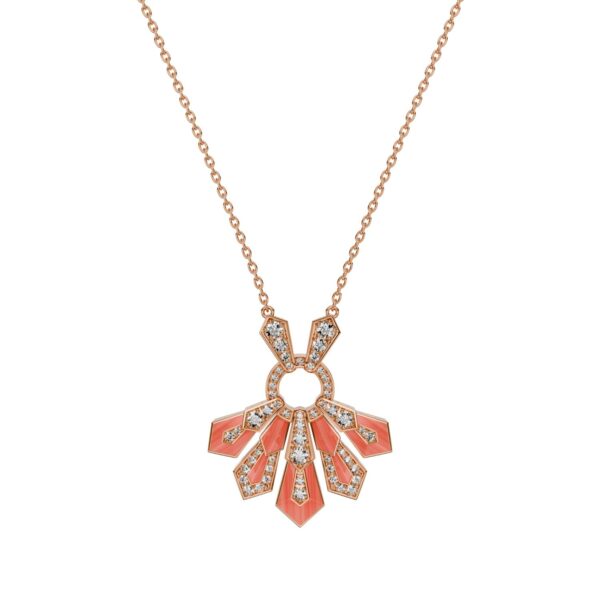 Pendant in 18K rose gold, coral and diamonds. Diamond quality G – H color, VS.