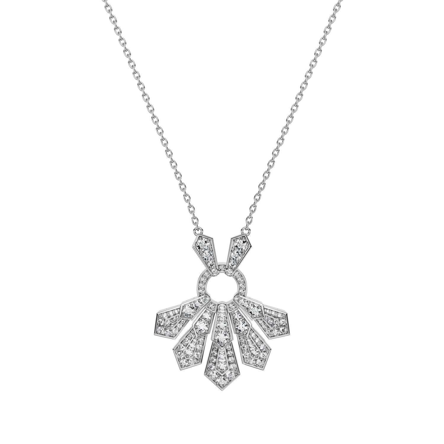 Pendant in 18K white gold and diamonds. Diamond quality G – H color, VS.