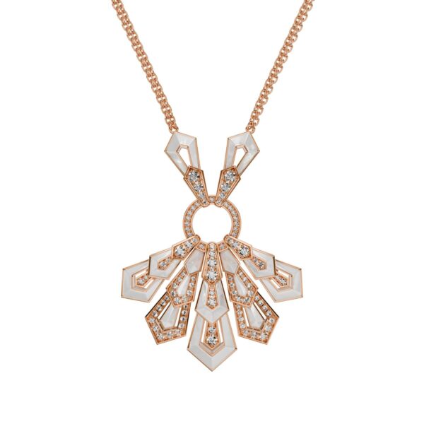 Bangle in 18K rose gold, with mother of pearl and diamonds. Engraved with brand logo and polished surface. Diamond quality G – H color, VS.