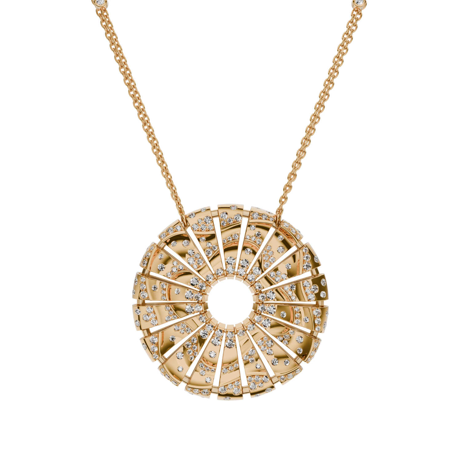 Pendant in 18K yellow gold and diamonds. Diamond quality G – H color, VS.