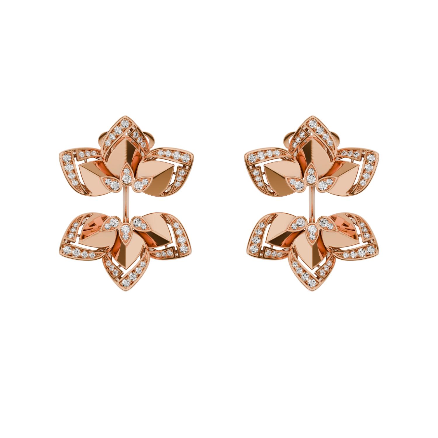 Earrings in 18K rose gold and diamonds. Diamond quality G – H color, VS.
