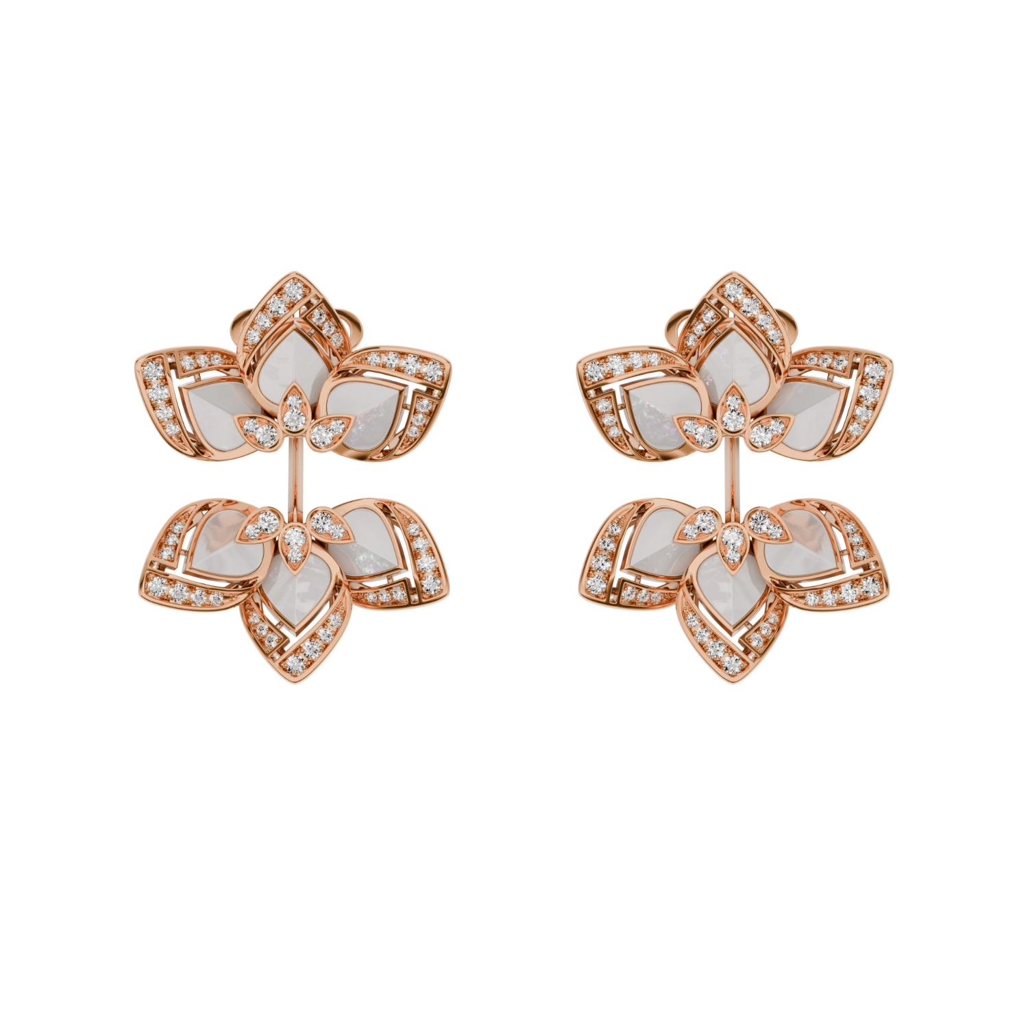 Earrings in 18K rose gold, mother of pearl and diamonds. Diamond quality G – H color, VS.