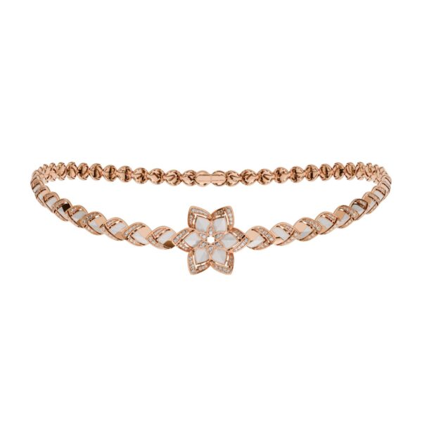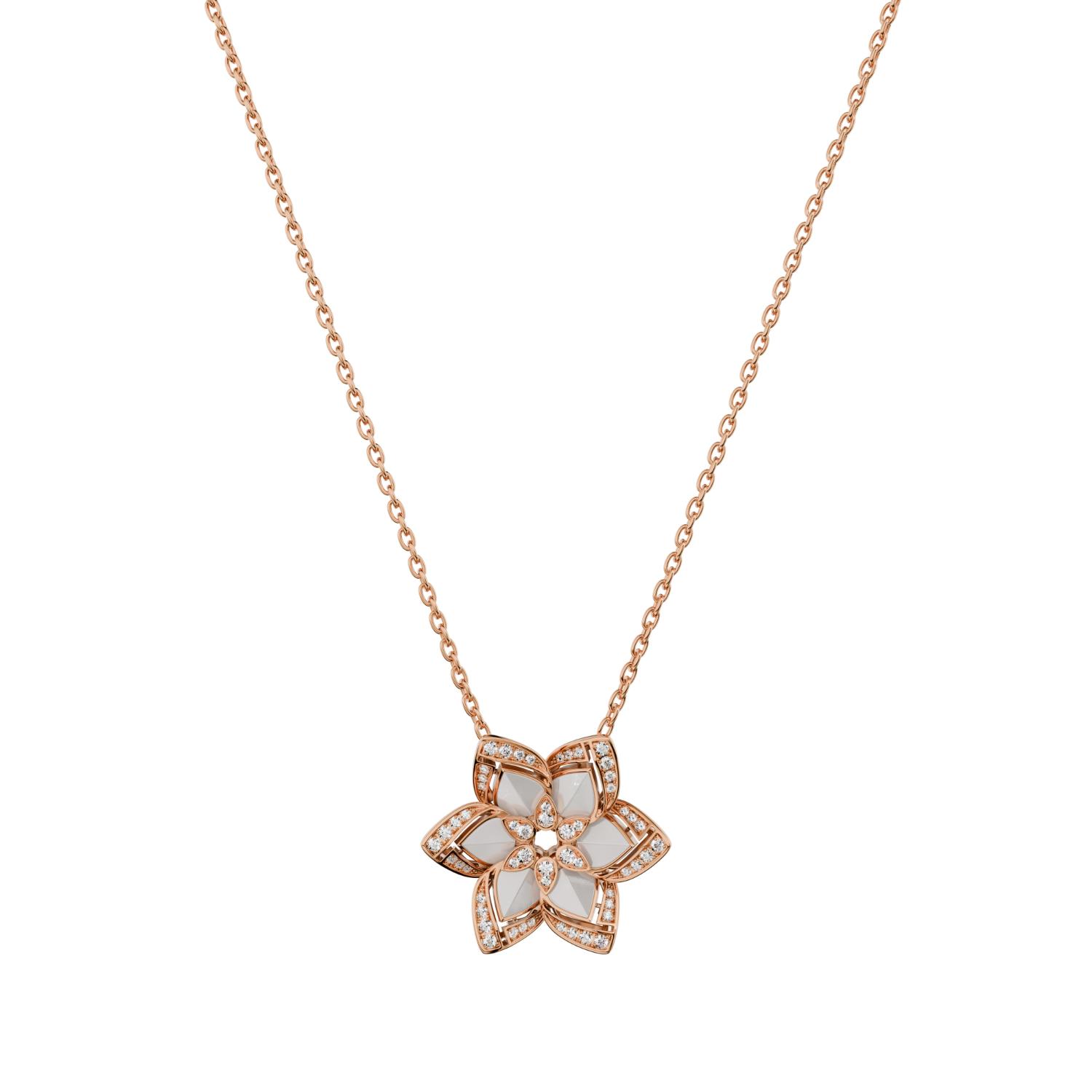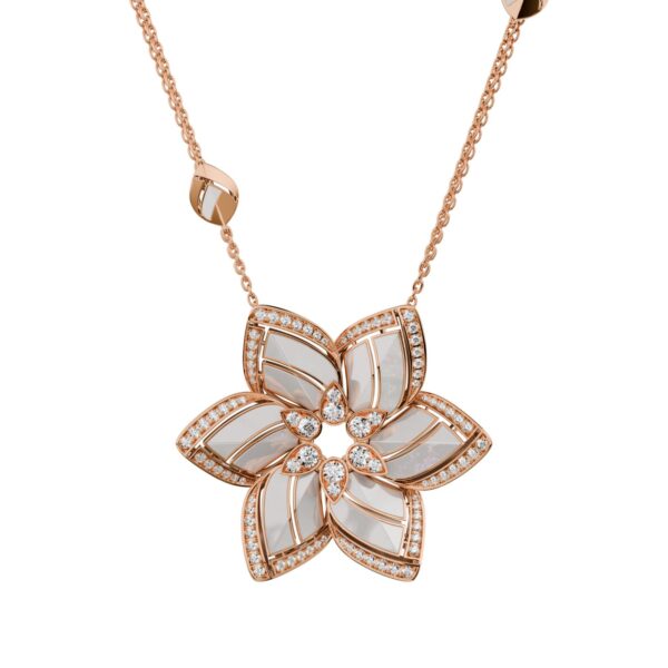 Pendant in 18K rose gold, mother of pearl and diamonds. Diamond quality G – H color, VS.